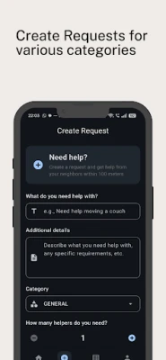 Hood is designed to connect neighbors within a 100-meter radius for daily chores and assistance. The app facilitates community support by allowing users to create help requests and offer assistance to nearby neighbors, fostering a sense of community and mutual aid.