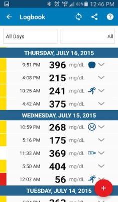 o Each blood glucose result is color coded to indicate if you are within acceptable range. You may customize the ranges given to you by your healthcare professional or use the default settings, which are the established 2015 American Diabetes Association guideline target ranges (mg/dL):