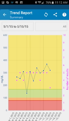 Summary Report – An excellent overview of glucose test results and trends in 1 easy-to-read document. (Only available with the Android App)